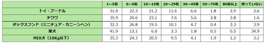 また、トイ・プードルやチワワでは「10~19着」もそれぞれ21.2%、23.1%と一定の割合を占めています。