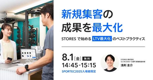 STORES 株式会社(以下、STORES)は、2025年7月30日(水)~8月1日(金)に東京ビッグサイトで開催される日本最大の国際スポーツ・健康産業専門展「SPORTEC 2025」に出展します。STORES ブースでは、ジム・ピラティス・ゴルフスタジオなどのフィットネス事業者向けに、予約から決済、顧客管理までおこなえる「STORES 予約」の体験会と、複数店舗の運営や経営にも役立つセミナーを実施します。また、2025年3月に提供を開始した、予約システム・POSレジ・キャッシュレス決済など店舗運営に必要なサービスをまとめた新プランもご紹介します。