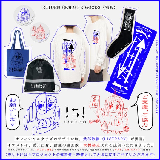 ▼クラファンのリターンには、愛知出身の漫画家・大橋裕之によるイラストを起用したグッズやイベント会期中に使えるお買い物券も! https://for-good.net/project/1001276