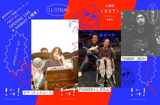 「100年先の世界を豊かにするための実験区」というコンセプトのもと、これからの時代を担う若い世代とともに新しい価値の創造に取り組む未来創造拠点「100BANCH」で活動する「SAFE ID」プロジェクトは、このほど、「障害がある人」「障害がない人」を分けることなく、アート展示/音楽ライブ/マーケットで交わる実験的プロジェクト「!⇆!(インターチェンジ)」を企画。その第一弾となるイベントを、11月17日(日)~11月24日(日)に名古屋市北区の『金城市場』にて開催する。初日の11月17日(日)には音楽・アート・マーケットを集めたオープニングイベントを実施。18日(月)~24日(日)には、グループ展が予定されている。また、プロジェクト実施のためのクラウドファンディングも実施している。