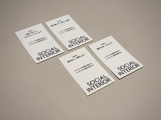 名刺には、新卒第一期生それぞれが選んだソーシャルインテリアの行動指針をデザインしています。