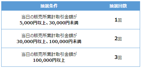 ・抽選条件の取引金額については実際の取引金額に準じます。