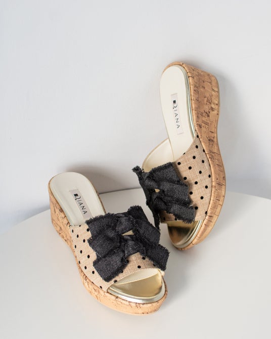 【Double Ribbon Wedge Sandals】