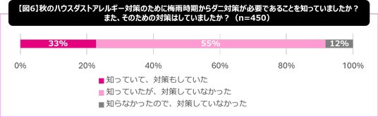 さらに、秋のハウスダスト対策として重要とされる“梅雨時期からのダニ対策”については、対策を実施していない人が67%にのぼる結果となりました。【図6】