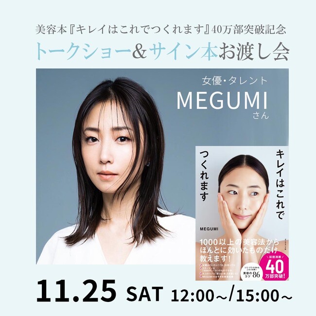 ※チケットをご購入頂いたお客様には、MEGUMIさんのサインが入った本をお渡ししますが本にお客様のお名前は入りません。また本イベントは写真撮影の予定はございません。予めご了承ください。
