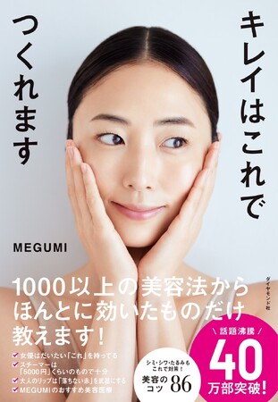 発売翌日に10万部を超え、現在は40万部を突破した、MEGUMIさんの著書『キレイはこれでつくれます』。本書は、MEGUMIさんが試してきた1000以上の美容法から効果を実感しているものだけを厳選して紹介。スキンケア・メイク・ボディ・ヘア・メンタルケアまで、美容のコツがたっぷりと掲載されています。