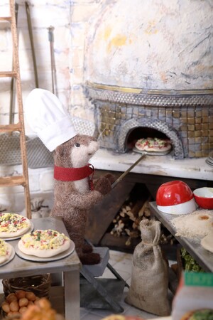 “動物たちが暮らす森の中にあるブーランジェリーで、カワウソがパンを焼く姿”が精巧に表現されています。