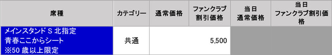 優待チケット(バックスタンドゾーン3)1,500円
