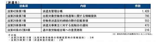 *1: 主な労働者派遣法違反条項(令和4年度)厚生労働省発表