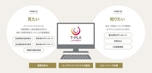 https://www.mhlw.go.jp/content/11600000/001138005.pdf派遣先企業からは「契約書のやり取りに時間がかかる」「些細な点を変更したいのにできない」といったお声がありました。そのため「派遣先管理台帳」の記載不備や「労働者派遣契約」の内容に変更が生じた際にも、書類不備が発生しないよう対策が必要となっていました。一方、当社ではテクノロジーの活用により、営業担当がより人の介在価値を高めていくことにこだわったDXに取り組んでまいりました。派遣先企業が派遣活用において知っておきたい法律知識や派遣スタッフ契約・請求管理、時間外労働の照会など、派遣先として対応が必要なことが手軽に確認できるプラットフォームとして、2020年9月「T-PLA」の提供を開始し、派遣先担当者約4万人、企業約1万5,000社以上*2が利用しています。*2: 2024年3月6日時点の当社T-PLAに登録しているユーザー数と企業数 ■「T-PLA」の新機能について (1)「T-PLA」で、派遣先企業が個別の労働者派遣契約書(個別契約書)の担当情報を変更することが可能に