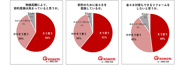 ■物価高騰で節約志向が高まっている人が93%。リフォームを考えるほとんどの人が、省エネ対策に関心大