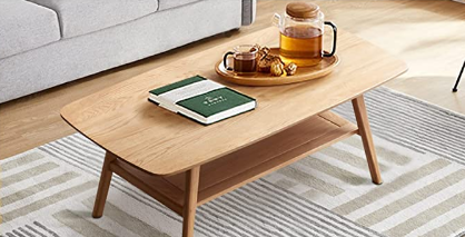 源氏物語YESWOODのセンターテーブルは天板の他に、脚も棚の部分も全部100%北米産FAS級オーク材を採用して、頑丈で重厚感があります。