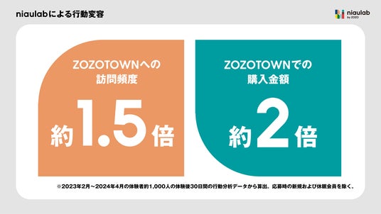 体験後、体験者のポジティブな行動変容も見えてきました。体験者のZOZOTOWNへの訪問頻度は約1.5倍に、さらにZOZOTOWNでの購入金額は約2倍に増えたことが分かりました。
