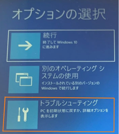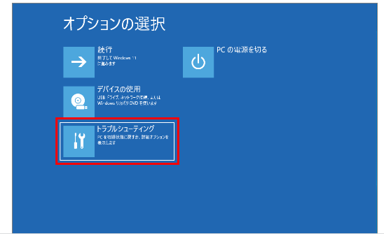 Step4:「オプションの選択」という画面が表示されたら、「トラブルシューティング」へ進みます。