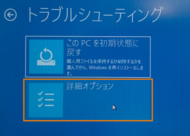 Step2:以下の画面が表示されたら「詳細オプション」を選択します。