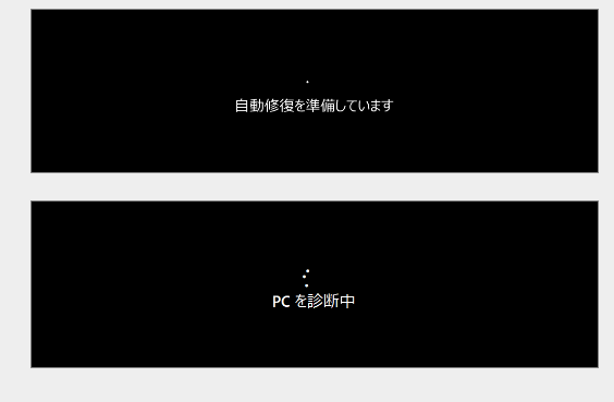 Step1: リセットボタンを押し、電源ボタンを長押しするという作業を2度繰り返すと、3度目から自動修復が開始します。