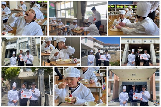 ▲2023年4月 愛媛県上島町の離島の小・中学校の児童・生徒・ケーキを寄贈