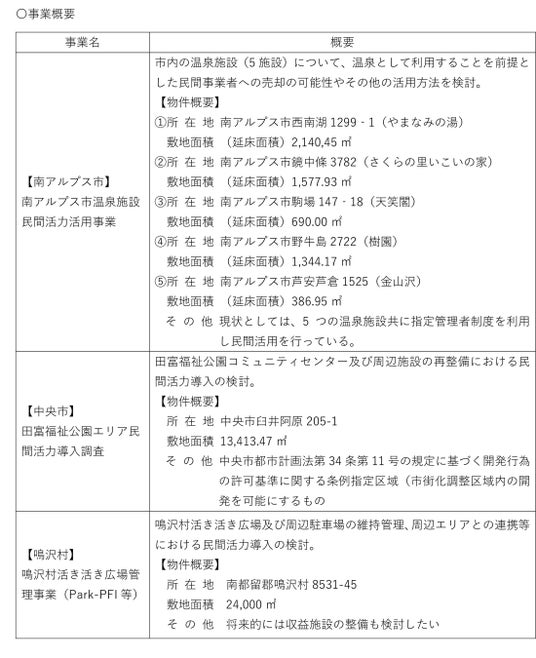 やまなしPPP/PFI地域プラットフォーム(事務局:山梨中央銀行、山梨県)は、地方公共団体におけるPPP/PFI事業の推進と、民間事業者さまの事業参画を支援するため、「PPP/PFIサウンディング型市場調査(非公開)」を実施いたします。