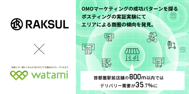 ラクスル株式会社(本社:東京都品川区、代表取締役社長CEO:松本恭攝)と、ワタミ株式会社(本社:東京都大田区、代表取締役会長 兼 社長:渡邉美樹)はチラシのポスティングに関するOMOマーケティングの実証実験にて、エリアによる商圏の傾向を発見したことをお知らせいたします。