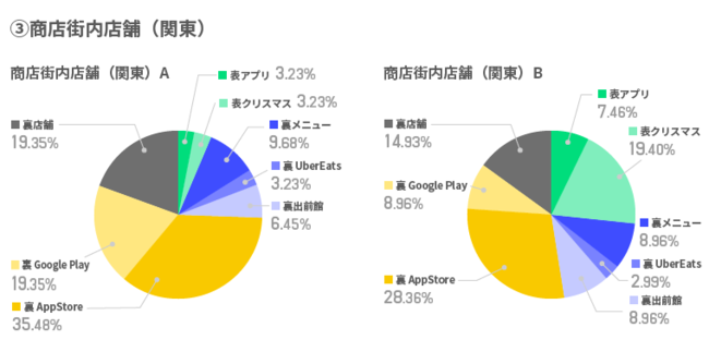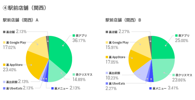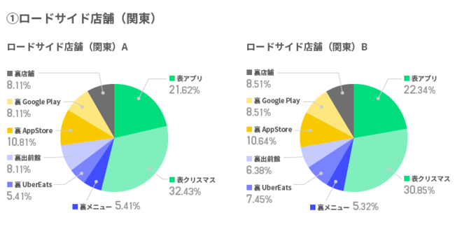 エリアAではUber Eats、公式アプリの順、エリアBでは特別価格、クリスマスプレートメニューの順でアクセスが伸びた