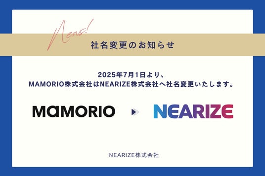 このたび私たちは、2025年7月1日付で社名を「MAMORIO株式会社」から「NEARIZE株式会社(ニアライズ)」へ変更いたしました。