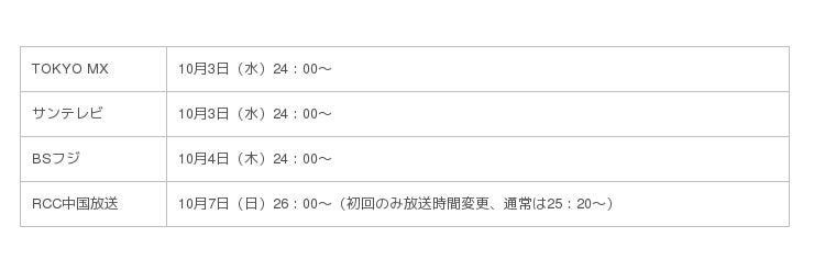 TOKYO MX 10月3日より毎週水曜日24:00~