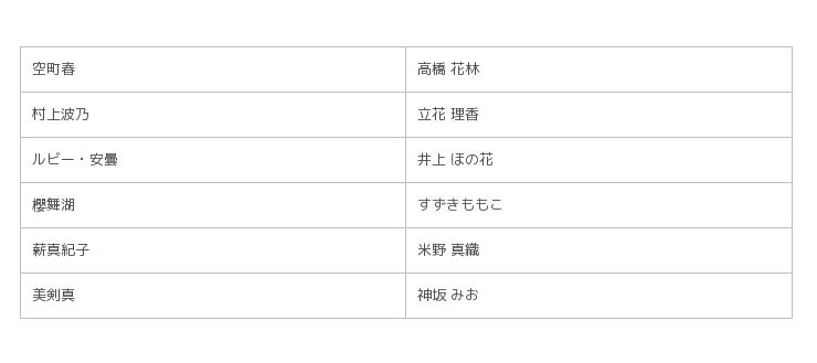 高橋花林(空町春 役)、井上ほの花(ルビー・安曇 役)、すずきももこ(櫻舞湖 役)