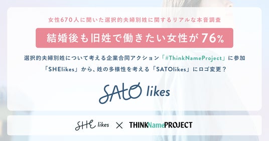 選択的夫婦別姓について考える企業合同アクション『Think Name Project』に参加「SHElikes」から、姓の多様性を考える「SATOlikes」にロゴ変更?