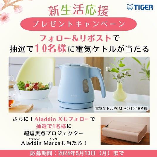 また、本日4月22日よりタイガー公式Xアカウントにて電気ケトルが当たるプレゼントキャンペーンを実施いたします。