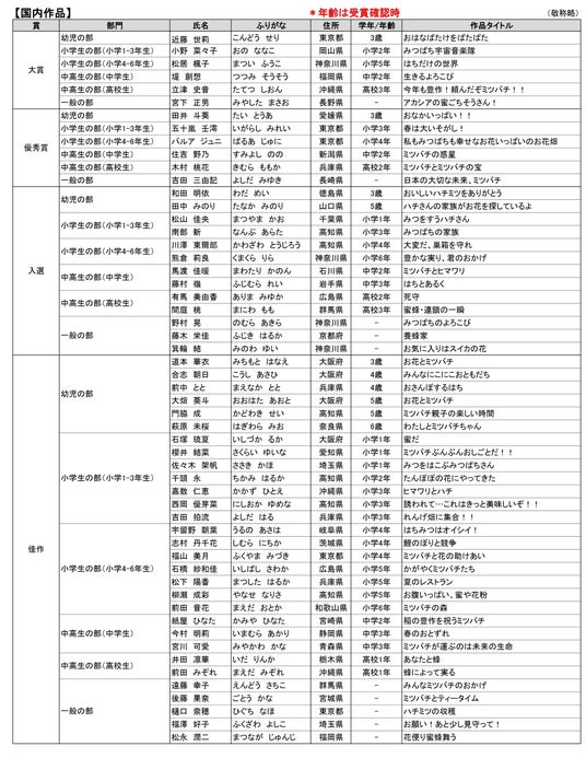 ※入賞作品は、山田養蜂場のホームページからご覧いただけます。