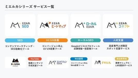 「辺境の知から、“マーケティングゼロ“を実現する」をコンセプトに、企業のWebマーケティングを支援。2005年の創業以来、クライアント企業のSEO施策、コンテンツ制作などの事業を展開。2013年からSEOプラットフォーム「ミエルカSEO」の自社開発を開始し、2015年リリース。開発メンバーには、ウェブアナリストで当社CAO(Chief Analytics Officer)・小川卓に加え、筑波大学ビジネスサイエンス系の吉田光男准教授、明治大学理工学部情報科学科・高木友博教授ら、AIの権威が加わる。ソフトウェア特許登録済。2024年7月31日、東京証券取引所スタンダード市場上場。