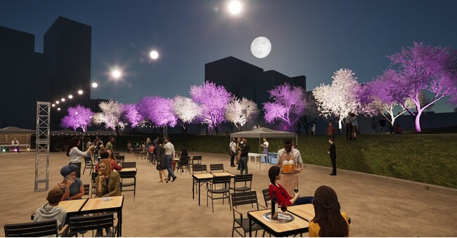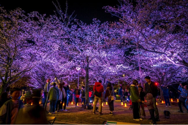ご家族やご友人と美しくライトアップされた桜の下、楽しいひと時をお楽しみください!