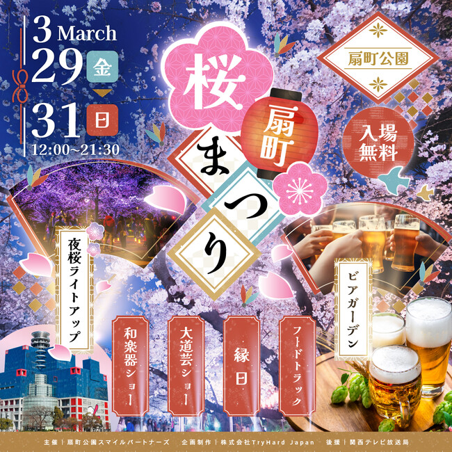 株式会社TryHard Japan(所在地:大阪市中央区)は、2024年3月16日(土)10:00より、2024年3月29日(金)~3月31日(日)の3日間にわたって扇町公園で開催される「扇町桜まつり」の「ビアガーデンエリア」チケットの販売を開始いたします。