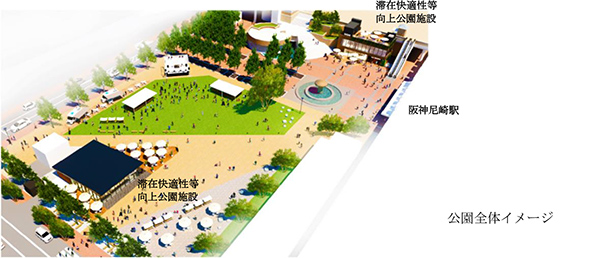 今後は、中央公園のリニューアルによる新たなイメージの発信と、公共施設の包括管理による既存の地域資源を活用した賑わいの創出を一体的に進めることで、尼崎市の玄関口の1つである阪神尼崎駅周辺の都市再生を官民連携で推進してまいります。