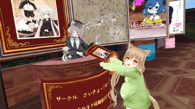 3度目の開催となる今回は、300以上のサークルが出展し、同人誌や漫画、イラストなど様々なジャンルの作品を展開。来場者は好きな作品のサンプルを実際に手に取り試読したり、出展者とコミュニケーションを取ったりしながら新しい作品や出展者との出会いをメタバース上で自由に楽しみ、大いに盛り上がりました。さらにスマートフォンやPCなどのWebブラウザからも参加できる会場を用意したことで、VR機器をお持ちでない方もメタバース上での同人誌即売会を手軽に楽しんでいただきました。