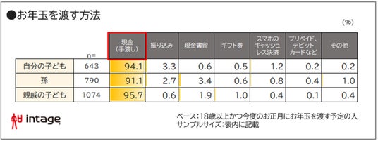 ・あげる人、9割以上は「現金での手渡し」を予定。「スマホのキャッシュレス決済」は、「振り込み」にも及ばず