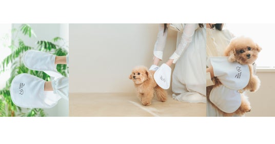 まるでぎゅーっとハグするように、ワンちゃん、猫ちゃんとスキンシップをとりながら、デイリーケアが出来ます。ケアが嫌いな子でも思わずリラックスしてしまう使い心地で、拭き終わった後にはさらに愛しさが深まること間違いなしのアイテムです。