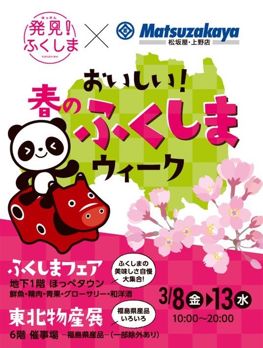会場には大丸・松坂屋 公式キャラクターのさくらパンダと、「発見!ふくしま」公式キャラクター“めっけちゃん”も登場し、会場を盛り上げます!