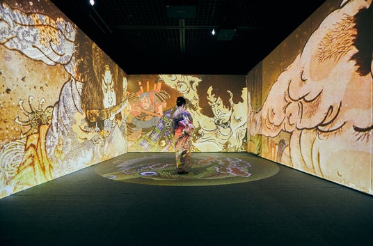 葛飾北斎、歌川国芳、歌川広重、喜多川歌麿、東洲斎写楽、歌川国貞など世界的な浮世絵師の作品300点以上をもとに、3DCGアニメーションやプロジェクションマッピングを駆使して大人から子どもまで楽しめるグラフィカルなデジタルアート作品として描き、立体映像空間で浮世絵の世界に没入できる体感型デジタルアートミュージアムです。