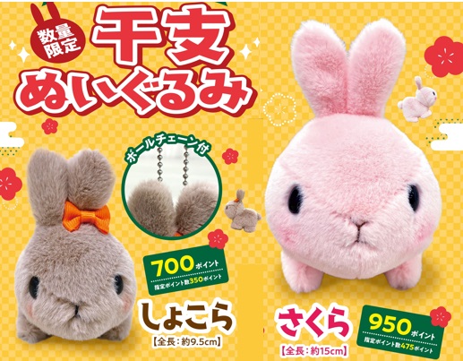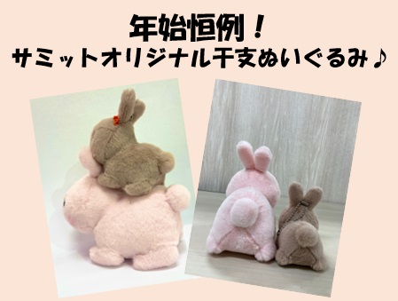 サミットは、年始恒例企画としてオリジナルの干支ぬいぐるみをサミットポイントで交換できるキャンペーンを年始に行います。兎年の2023年は、前から見ても、後ろから見てもとってもかわいい、うさぎのぬいぐるみ「さくら」と「しょこら」が登場します。