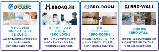ブロードエンタープライズは2000年12月の創業以来、全国の空室問題を解決すべく、マンション向け高速インターネット「B-CUBIC」、IoTインターフォンシステム「BRO-LOCK」、宅内IoTリノベーション「BRO-ROOM」、外壁塗装・大規模修繕工事「BRO-WALL」をはじめとした住宅のバリューアップに繋がるサービスを提供しており、事業全体で20万世帯以上の導入実績があります。