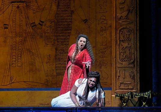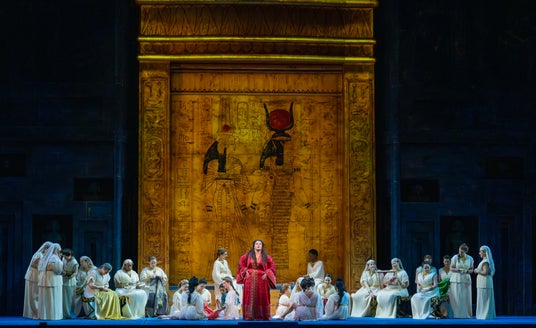 本作は、古代エジプトを舞台に究極の三角関係を描いた、「オペラ王」ヴェルディによる最高傑作。サッカーの応援歌でも知られる〈凱旋行進曲〉などの名曲が彩る「オペラのなかのオペラ」をMETで36年ぶりとなる、トニー賞受賞演出家マイケル・メイヤーによる新演出でお届けします。《アイーダ》ならではの大掛かりな舞台セットを使いつつ、プロジェクションマッピングなどの最新技術も駆使した新たな魅力満載の舞台は、今シーズンの中でも最も注目の作品です。