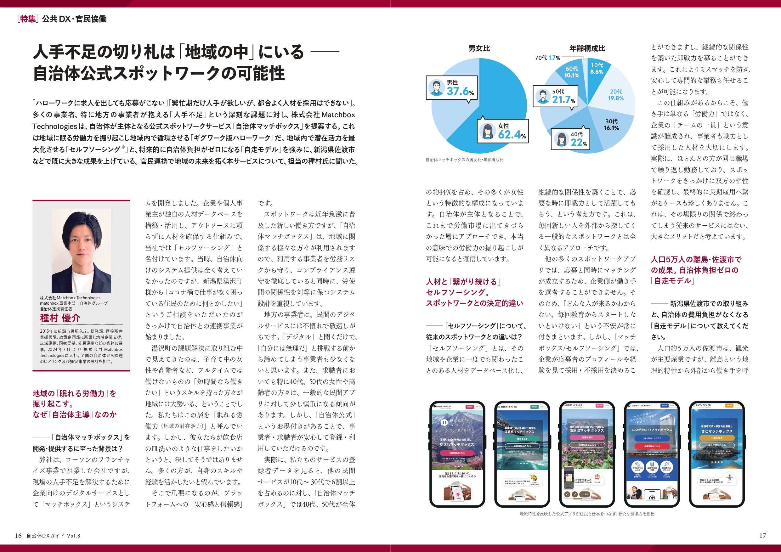 この取り組みは、『自治体DXガイド Vol.8』の特集「官民協働、次のステージへ 公共DXの新潮流」にも掲載されており、地域の潜在活力を最大化する先進事例として紹介しています。