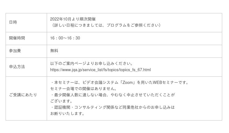 一般財団法人日本品質保証機構(JQA)は、2021年度に開催し大変好評を博したサービスロボットに関連した無料WEBセミナーを、今年度も実施いたします。