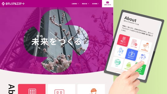リニューアル後のサイトでは、これから注力していく不動産事業への想いがより伝わるよう、「未来(まち)をつくる」というキャッチコピーをメインに据え、新たに決定したイメージカラーの紫も取り入れています。