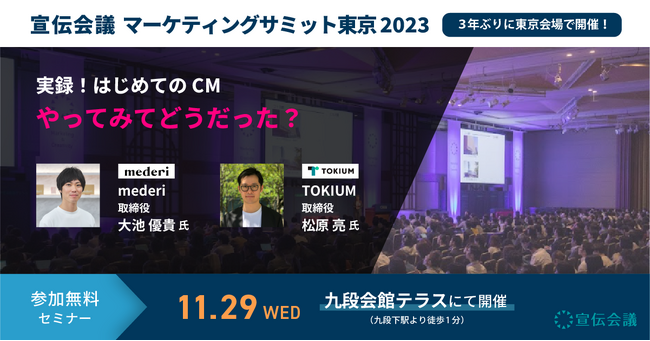 11月29日に実施されるイベントで、mederi株式会社 取締役 大池氏と「はじめてのテレビCM公開」をテーマに対談