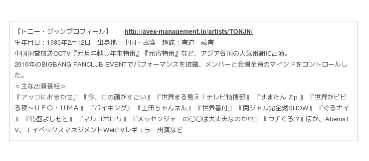 先ごろ行われた映画『秘密 THE TOP SECRET』試写会の舞台挨拶にて、生田斗真と岡田将生の“秘密”を見事に解き明かし話題騒然となったトニー・ジャン。現在さまざまな番組から出演オファーを受けており、そのたびに数々の有名タレントや著名人の心を暴いてきました。