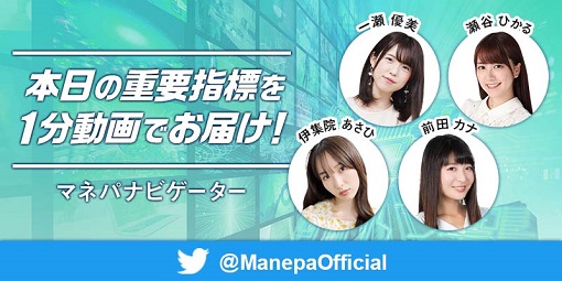 3代目マネパナビゲーターを務めるのは、2代目から継続の一瀬優美さん、瀬谷ひかるさんに加え、伊集院あさひさん、前田カナさんの4名です。