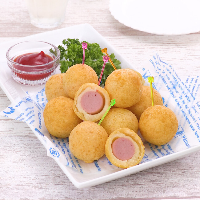 マッシュポテトで魚肉ソーセージを包んで一口大にして揚げる一口ポテトボールです。