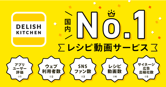 国内No.1のレシピ動画数(※)で、3,000万人以上に利用されているレシピ動画メディア。レシピ動画サービスとして「アプリユーザー評価」(*1)「ウェブ利用者数」(*2)「SNSファン数」(*3)「レシピ動画数」(*4)「サイネージ広告出稿社数」(*5)でそれぞれ国内No.1。レシピは「誰でも簡単においしく作れる」をコンセプトにすべて管理栄養士などの食のプロによって考案され、その総数は5万件以上。さらに、近くのお店の特売情報の配信・クーポン配布などの毎日のお買い物がお得・便利になる機能や、作りたいレシピに必要な食材をワンタップでネットスーパーに注文できるシステム、デザイン性と機能性に優れたオリジナルキッチンツールの販売など、食卓を豊かにするサービスが満載です。
